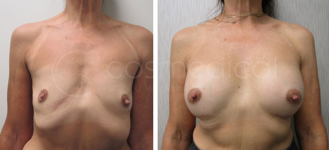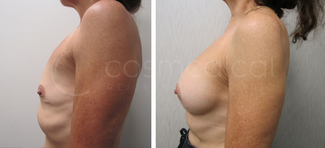 45-year old female, saline breast implants