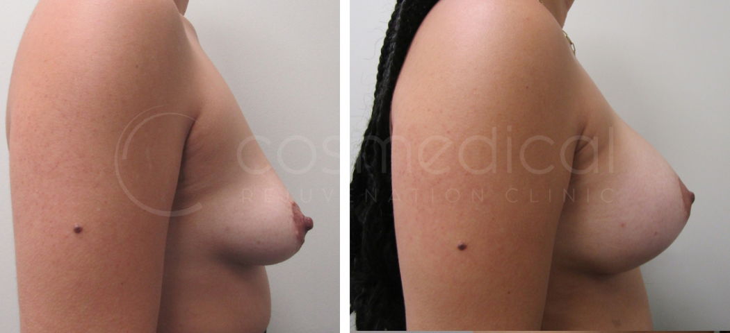 29-year old, 375cc cohesive gel breast implants, extra full profile